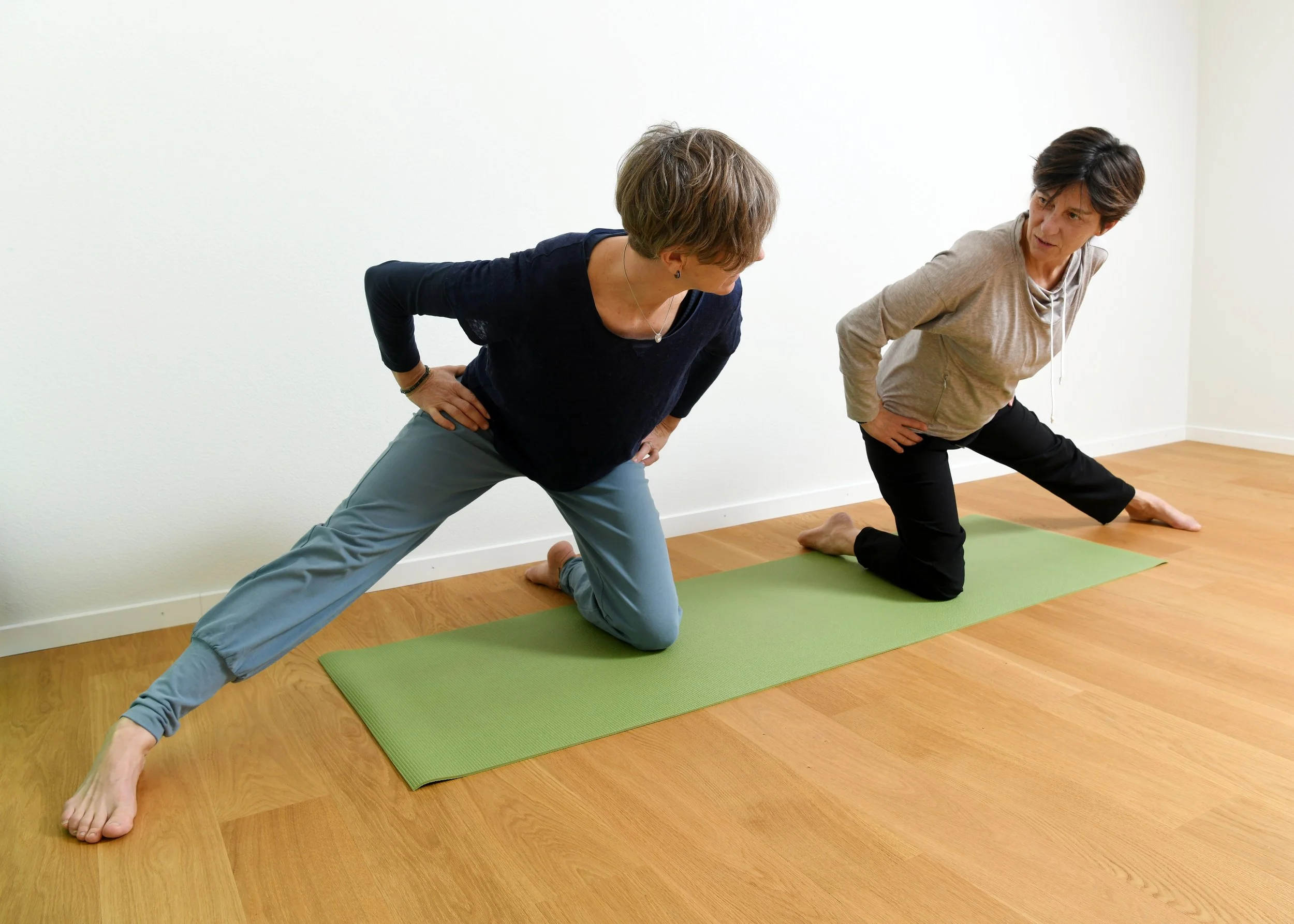 In einer Gruppe praktizieren wir Übungen zu den Elementen “faszienorientiert bewegen” und “im Jetzt sein”.