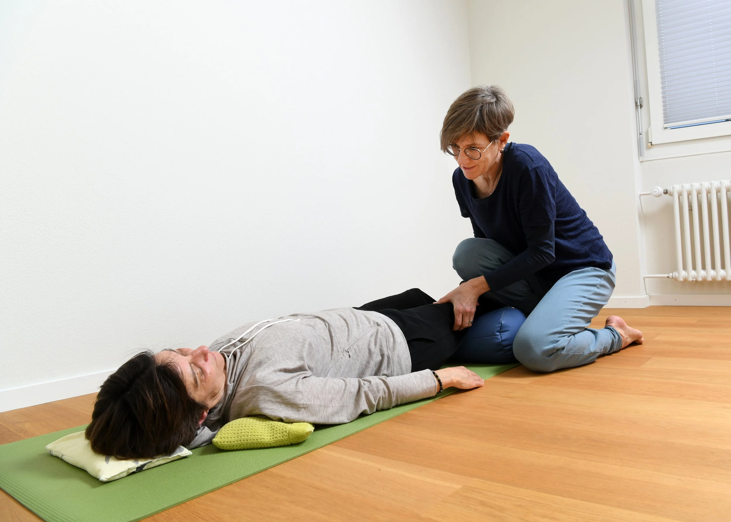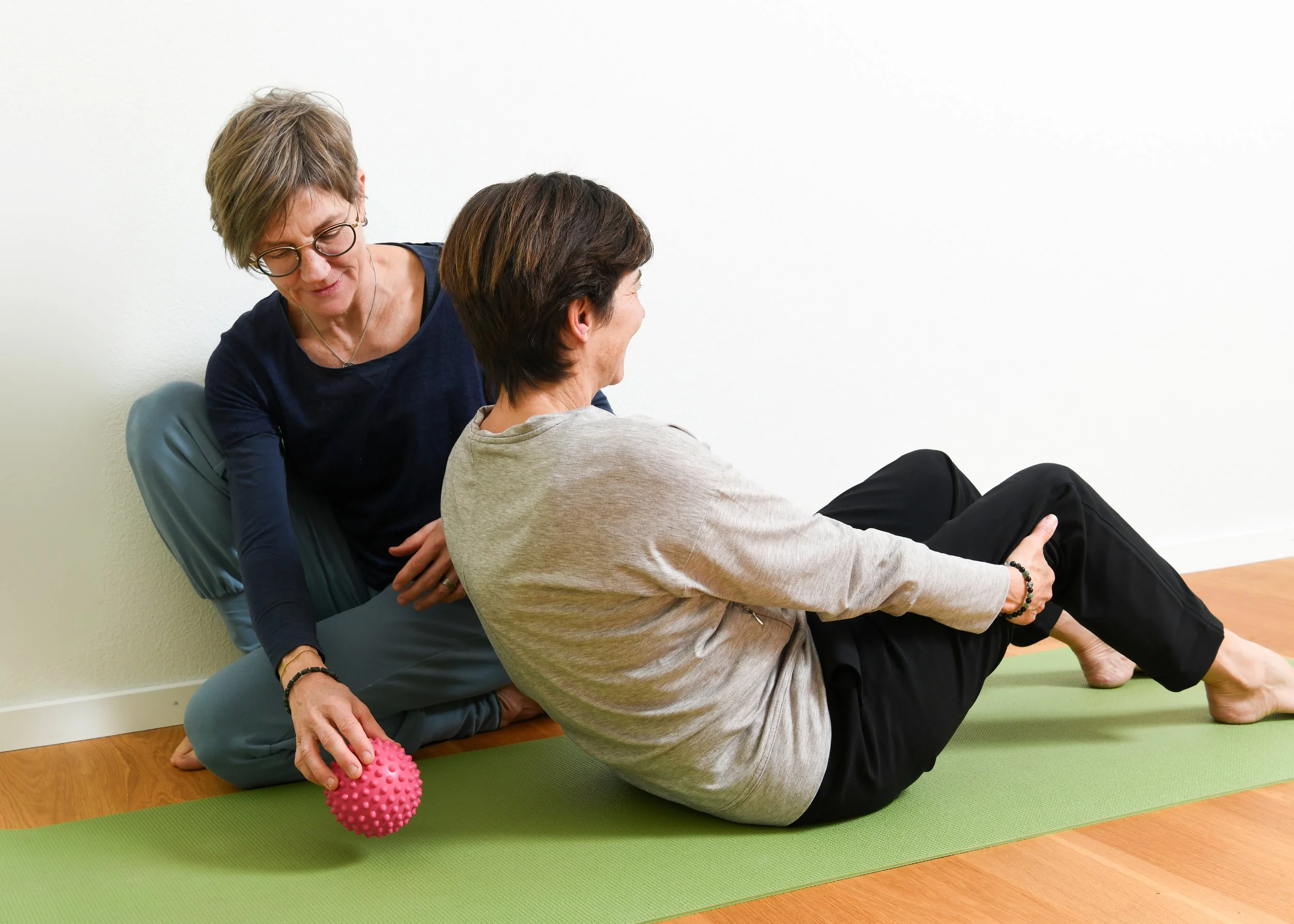 Du lernst mein Angebot mit faszienorientierten Bewegungen, Druckpunktbehandlung und Übungen zum im Jetzt sein kennen.